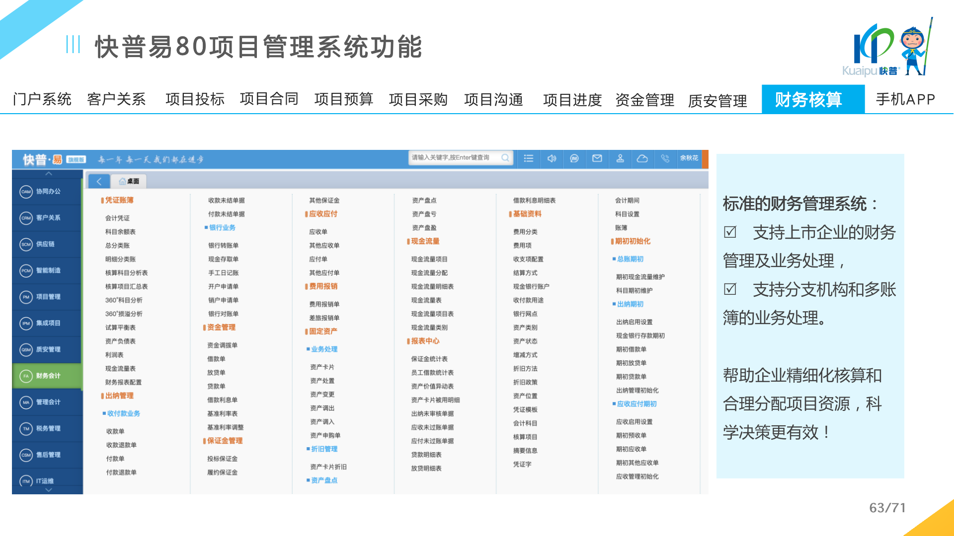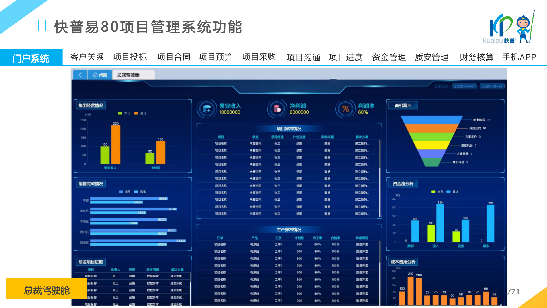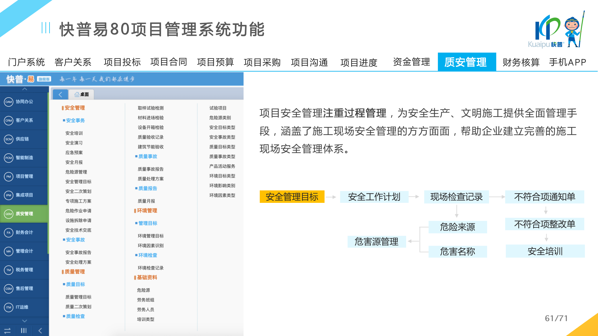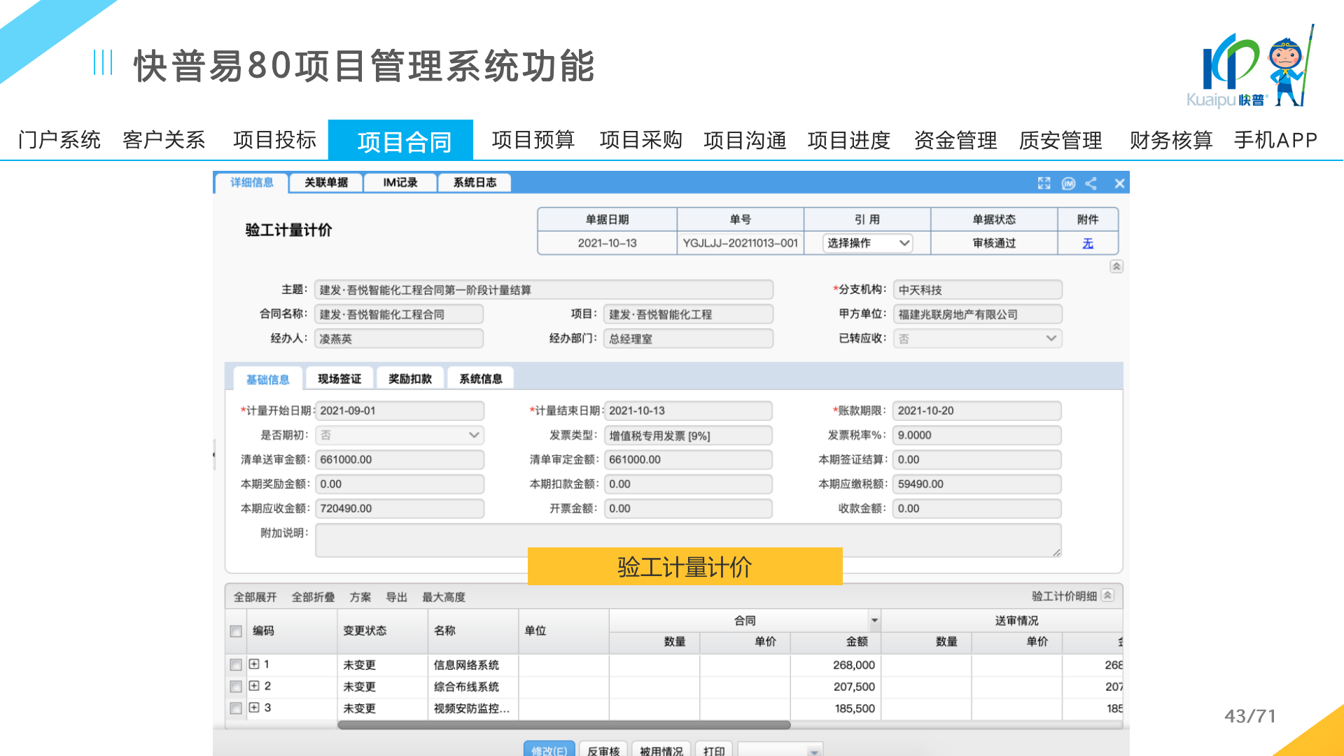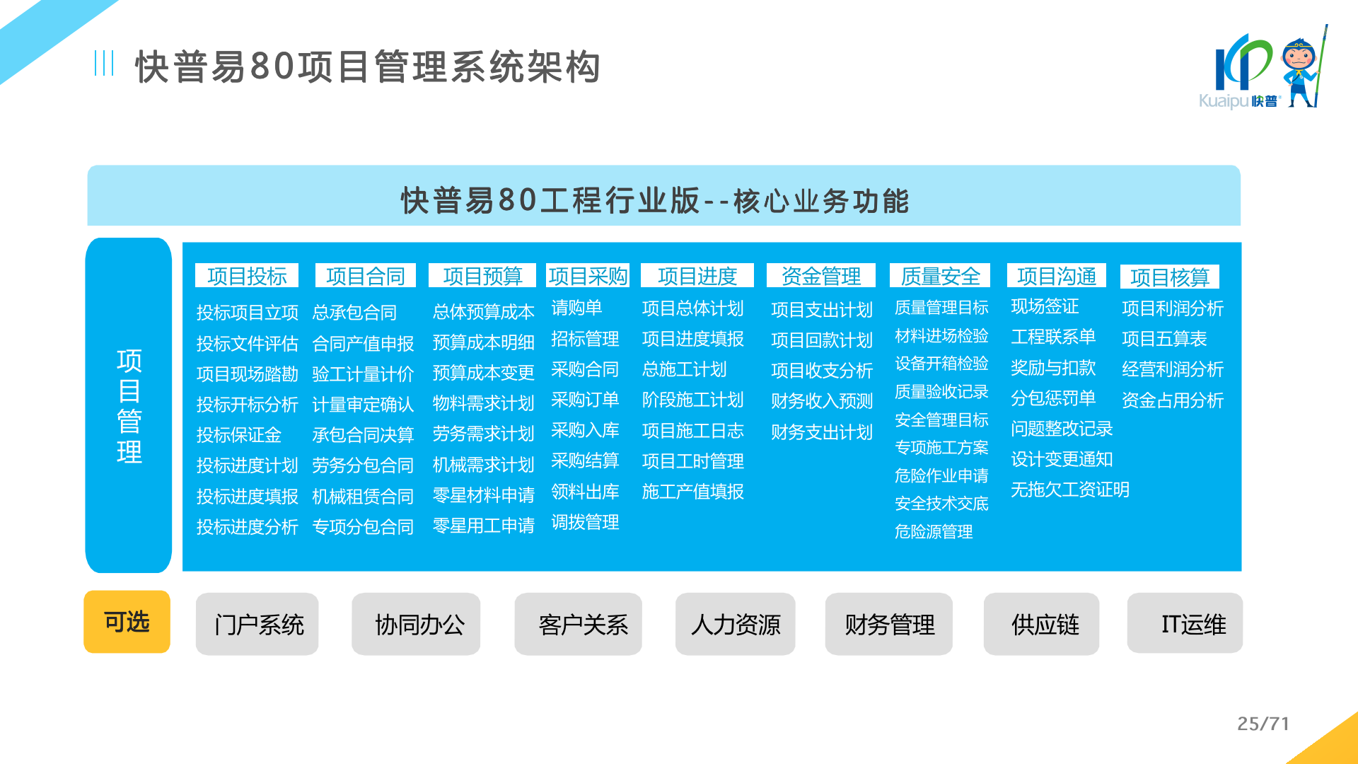 快普易80以項(xiàng)目管理為核心,通過“四控、四管、一協(xié)調(diào)”方式,對(duì)項(xiàng)目進(jìn)度、成本、資金、質(zhì)量安全進(jìn)行全面控制,實(shí)現(xiàn)投標(biāo)管理、合同管理、物資管理、預(yù)算管理等項(xiàng)目全生命周期項(xiàng)目的數(shù)字化管理,實(shí)現(xiàn)資源合理配置、保障良好的項(xiàng)目效益。