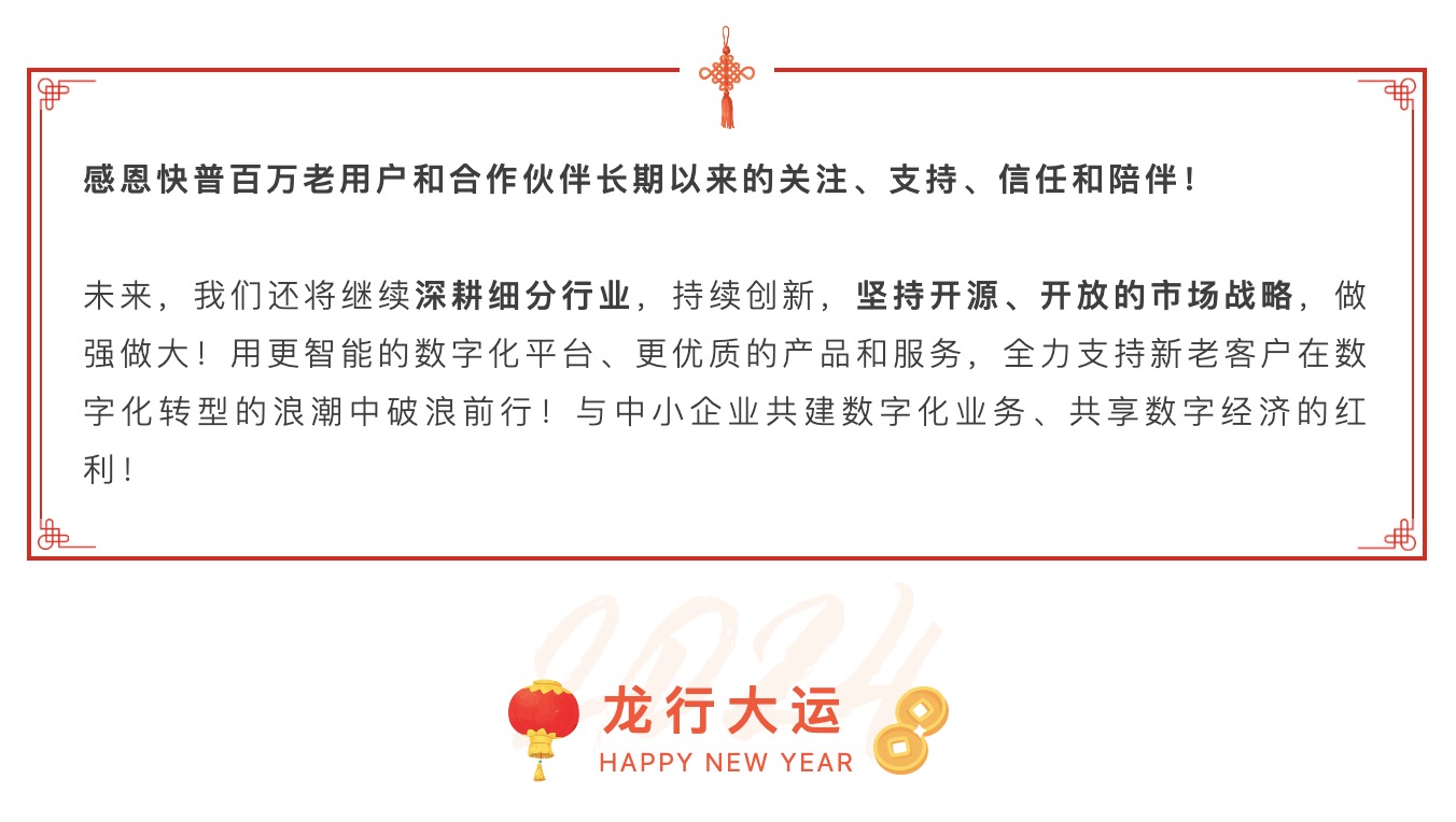 2023年是快普銳意改革、開拓進(jìn)取的一年。面對機(jī)遇和挑戰(zhàn),我們苦練內(nèi)功,加大研發(fā)投入,積極擁抱市場,通過新一代“易”系列產(chǎn)品,幫助大量企業(yè)成功實現(xiàn)數(shù)字化的轉(zhuǎn)型升級,賦能企業(yè)邁向高質(zhì)量發(fā)展!同時,快普也實現(xiàn)了自身的逆勢增長,多項科技創(chuàng)新成果獲得了政府的嘉獎與社會各界的好評!2024年,我們不忘初心,堅守“數(shù)字化平臺服務(wù)商”的使命,1月份再創(chuàng)多項佳績!